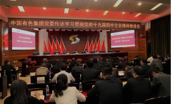 為貫徹落實黨中央、國務院國資委黨委關于抓好黨的十九屆四中全會精神學習貫徹的相關部署,中國有色集團黨委于11月16日召開系列會議,傳達學習貫徹四中全會精神,并對有關工作進行部署。